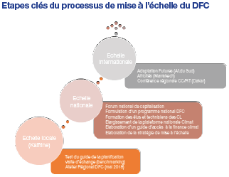 La mise à l’échelle devra aussi s’appesantir sur une meilleure diffusion des connaissances liées aux mécanismes de financement climat avec les contrôles fiduciaires nécessaires, notamment par une amélioration de la redevabilité. Enfin, l’élaboration d’un programme national DFC porté par les collectivités territoriales, en partenariat avec les membres de la plateforme nationale sur le financement climat serait l’un des jalons les plus importants de la mise à l’échelle.