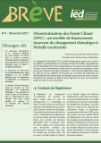 Le changement climatique (CC) constitue la plus grave menace de ce siècle. Les effets de ce phénomène sont ressentis à toutes les échelles. Cependant, les pays en développement moins responsables sur les causes sont les plus touchés à travers leurs communautés locales dont les activités économiques restent fortement tributaires des aléas climatiques. Cette présente publication dans le cadre de la revue BREVE met l’accent sur le contexte de l’expérience de décentralisation des fonds climat au Sénégal, le processus de mise en oeuvre, les facteurs de réussite, les défis et leçons apprises au cours de la première année de mise en œuvre du projet.