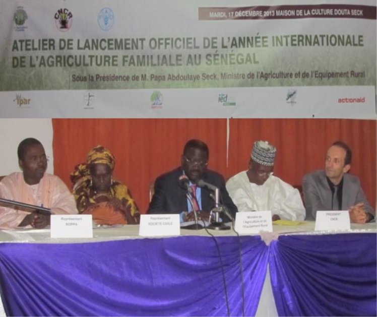 Le mardi 17 décembre 2014, le CNCR, en collaboration avec la société civile et la FAO, a organisé à la Maison de la Culture Douta Seck à Dakar, l’atelier de lancement de l’Année Internationale de l’Agriculture Familiale (AIAF-2014). Deux évènements majeurs ont marqué cette journée : l’installation officielle du comité national de pilotage de l’AIAF-Sénégal et le lancement de l’observatoire national des exploitations familiales.