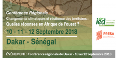Innovation, Environnement et Développement en Afrique (IED Afrique), éditrice de la revue AGRIDAPE, organise une conférence régionale sur « Changements climatiques et résilience des territoires : Quelles réponses en Afrique de l’ouest ? ». Elle se tiendra du 10 au 12 Septembre 2018 à Dakar, Sénégal.