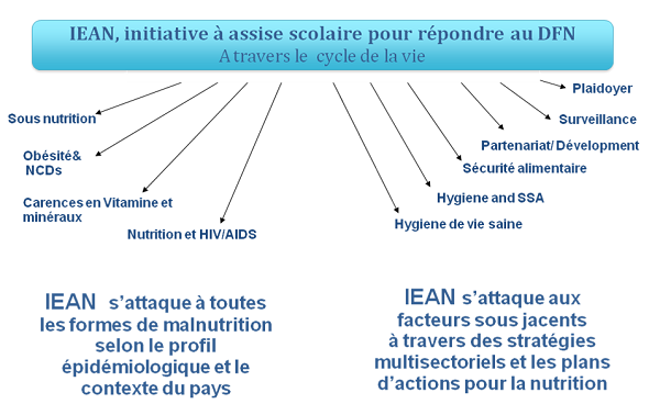 Il est important ici de souligner que l’IEAN a été mise en œuvre pour la première fois en Afrique francophone à titre pilote au Bénin et au Burkina-Faso dans le cadre du projet Double Fardeau Nutritionnel (DFN)