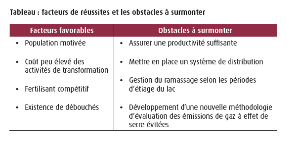 davantage les communautés agricoles locales qui transforment ainsi un problème en opportunité. De plus, la transformation des jacinthes en aérobiose
