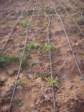 Les pratiques agricoles indiquées dans le tableau 1 auront des potentialités spécifiques dans les zones. En effet, l’agroforesterie permettra de combiner la culture des plantes annuelles et les arbres qui pourront non seulement réduire l’impact de la chaleur, mais aussi et surtout exploiter les eaux des horizons profondes et les mettre à la disposition des cultures annuelles. L’agriculture de conservation s’avère importante pour minimiser les pertes d’eau par évaporation. L’adoption des pratiques de non labour ou de semi-labour réduiront les pertes de matière organique et d’eau par évaporation. Le développement des cultures de bas-fond comme le riz serait un moyen pertinent de valoriser les inondations engendrées par les changements climatiques. Le recyclage des eaux usées permettra d’augmenter la quantité d’eau disponible pour les divers usages ; les usages agricoles notamment. Cette pratique est tangible dans des pays comme l’Israël et le Maroc. L’irrigation goutte à goutte qui fait la fierté de ces deux pays est un exemple réussi de gestion bien rationnelle de l’eau. Elle permet d’éviter le gaspillage de l’eau pour la destiner uniquement aux cultures, et au moment où celles-ci en ont besoin. L’adoption de cultures tolérantes au sel comme le palmier dattier et le blé pourrait être une solution contre l’intrusion marine dans les eaux douces et les nappes. Il y a certitude que l’irrigation goutte à goutte et l’adoption de cultures tolérantes au sel soient judicieusement exploitées au Maroc et en Israël que nous avons visités respectivement en 2013 et en 1999. La figure 1 présente un système d’irrigation goutte à goutte sur sol salin au Maroc.