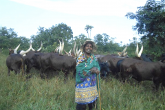 « J’élève des Ankole Longhorns traditionnelles, une race de vache forte, adaptée à l’environnement difficile de mon pays et résistante aux maladies tropicales. Elle n’a pas besoin d’antibiotiques, contrairement aux vaches Frisonnes Holstein qui sont populaires ici. Traditionnelle- ment, les femmes Bahima ne pos- sédaient pas de bétail ou de terres, mais ce n’est plus le cas aujourd’hui pour certaines femmes. Les hommes traient les vaches, les conduisent au pâturage et à l’abreuvoir. Les femmes collectent le lait et décident de la quantité à boire pour chaque membre de la famille. Nous transformons le lait pour faire du beurre. Nous connaissons les noms de toutes les vaches laitières, nous pouvons identifier une vache malade, nous prenons soin des veaux, nettoyons leurs étables et coupons l’herbe pour les nouveau-nés. Mon approche de l’élevage de la race Ankole Longhorns est une forme d’agroécologie : elle me permet d’élever mon bétail dans les prairies de la savane de l’Ouganda avec toute sa biodiversité. Mon bétail vit en troupeau comme une famille, ils s’accouplent naturellement et mes veaux tètent leurs mères. En tant que femme, c’est ça la vie. Je peux gérer mon bétail facilement car la race Ankole est de nature calme. Avec les vaches Ankole, je ne suis pas obligée de me spécialiser soit dans le lait, soit dans la viande, mais je peux produire ce qui est le plus approprié pour moi et ma communauté. Et j’espère que les autres vont respecter mes droits en tant qu’éleveuse et apprécier mon rôle et ma contribution à l’économie et à la sécurité alimentaire.