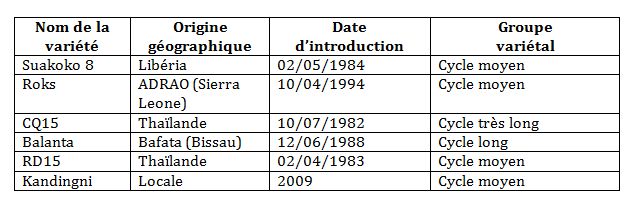 Tableau 1 : Variétés de riz mises à la disposition des micro-entrepreneurs de production de semences