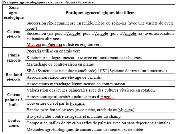 Les contraintes, besoins et priorités des paysans et de leurs groupements, ont également été analysés afin de déterminer les pratiques agroécologiques à expérimenter.