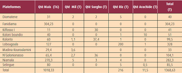 Ces centres de gestion post récolte et de commercialisation font de la prestation de services dans 110 villages impliqués les résultats ci-dessous montrent les réalisations faites en 2013.
