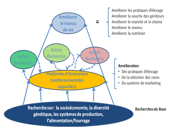 Le Forum Africain pour la Recherche Agricole (FARA) soutenu par d’autres initiatives continentales a proposé un modèle de recherche intégré qui sied avec le contexte agricole africain et sa ruralité. Par le passé, la diffusion de la connaissance et le transfert de technologie se faisait selon l’approche top-down. Cette approche, encore utilisée aujourd’hui, était caractérisée par un cloisonnement entre les parties impliquées dans le processus. D’une part, le chercheur, unique détenteur du savoir et donc des solutions, d’autre part, le paysan, ignorant qui attend, sagement, que des solutions lui soient proposées. Nombre de projets ont échoué sous ce modèle. Le dialogue véritable, il faut le dire, commence quand chacune des parties est consciente qu’elle peut recevoir et apprendre de l’autre. Ici, il s’agit d’un dialogue d’égal à égal. Le concept de Recherche Agricole Intégrée pour le Développement permet, par une approche multi acteurs, de créer un système d’échange et de dialogue entre le chercheur et le producteur et, d’une manière générale, entre tous les maillons d’une chaine des valeurs.
