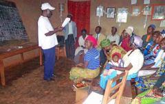 Un caviaculteur agissant en vulgarisateur lors d’une réunion rurale